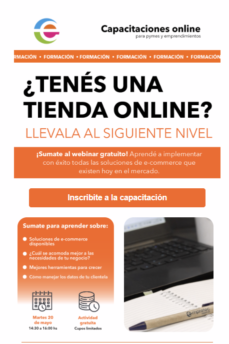 Capacitación gratuita con inscripción y cupos limitados ¿Tenés una buena idea de negocio pero te cuesta explicarla? ¿Sentís que cuando hablás de tu emprendimiento, no siempre se entiende o no…